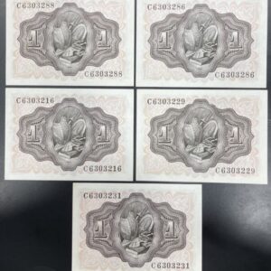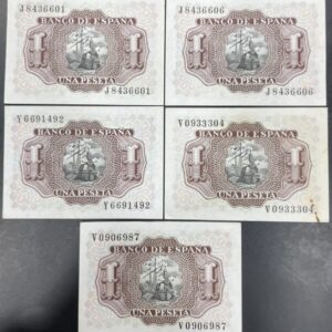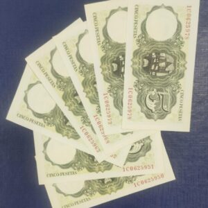 EDIFIL 465a. 1 PTA 22 JULIO 1953. LOTE DE 5 BILLETES SIN CIRCULAR.