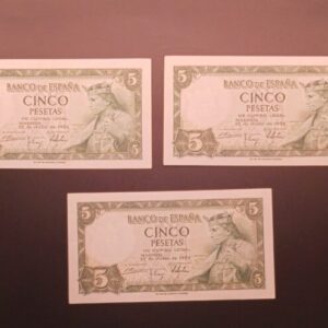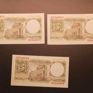 EDIFIL 466 a 5 PTAS 22 DE JULIO 1954 LOTE DE TRES BILLETES