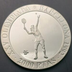ESPAÑA. AÑO 1990. 2000PTAS PLATA OLIMPIADAS DE BARCELONA.PELOTA VASCA.PESO 27 GR