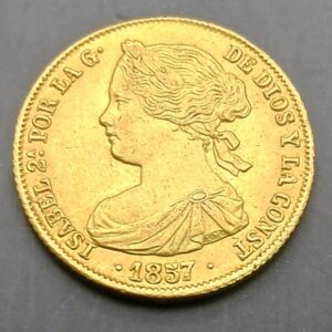 AÑO 1857. ISABEL II. 100 REALES ORO SEVILLA PESO 8,48 GR