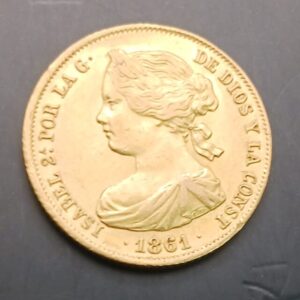 AÑO 1861. ISABEL II 100 REALES ORO MADRID PESO 8,4 GR