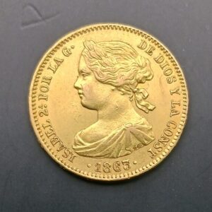 AÑO 1863. ISABEL II 100 REALES ORO MADRID PESO 8,4 GR