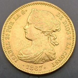 AÑO 1867. ISABELL I. 4 ESCUDOS ORO. MADRID. PESO 3,4 GR