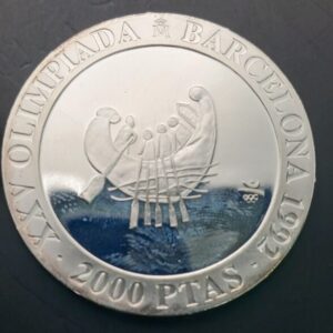 AÑO 1990. 2.000 PTAS PLATA XXV OLIMPIADA DE BARCELONA «BARCO ANTIGUO». PESO 27 GR