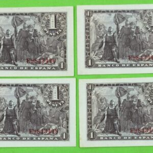 EDIFIL 447a. 1 PTA 21 DE MAYO DE 1943. LOTE DE 4 BILLETES CORRELATIVOS.