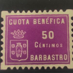 BARBASTRO (HUESCA). EDIFIL 2 *. 50 CTS CUOTA BENEFICA
