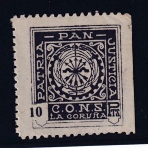 LA CORUÑA. EDIFIL 88 * 10 PTAS LILA PATRIA-PAN-JUSTICIA.