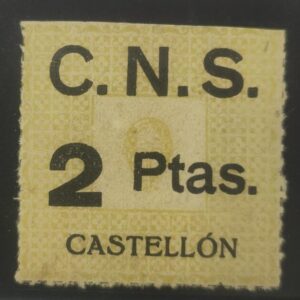 CASTELLÓN. EDIFIL NO CATALOGADO. 2 PTAS C.N.S NEGRO S AMARILLO.