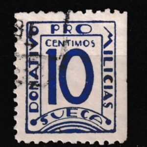 SUECA (VALENCIA). EDIFIL 15. 10 CTS AZUL DONATIVO PRO MILICIAS SUECA.
