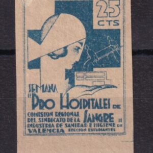 VALENCIA. EDIFIL 17*. 25 CTS AZUL PRO HOSPITALES DE SANGRE.