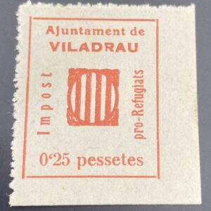VILADRAU ( GERONA ) EDIFIL 2* 25 CTS CARMÍN IMPOST DE GUERRA.