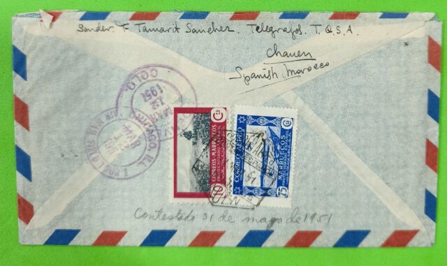 Inicio HISTORÍA POSTAL COLONIAS ESPAÑOLAS MARRUECOS 1951.- XAUEN (MARRUECOS) A COLORADO (EEUU)