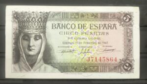 5 PTAS 13 FEBRERO DE 1943 SERIE J.