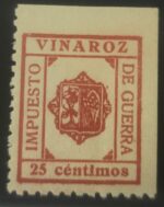 Inicio SELLOS GUERRA CIVIL ESPAÑOLA SELLOS LOCALES REPUBLICANOS VINAROZ (CASTELLÓN). 25 CTS IMPUESTO DE GUERRA.