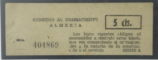 ALMERÍA. EDIFIL NO CATALOGADO. 5 CTS SUBSIDIO AL COMBATIENTE.