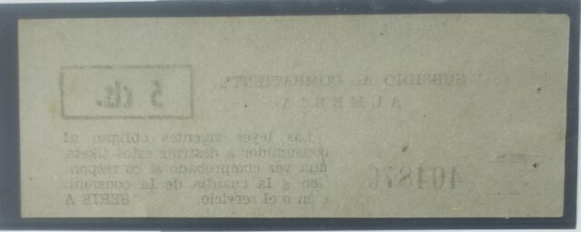 Inicio SELLOS GUERRA CIVIL ESPAÑOLA SELLOS LOCALES NACIONALES ALMERÍA. EDIFIL NO CATALOGADO. 5 CTS SUBSIDIO AL COMBATIENTE.