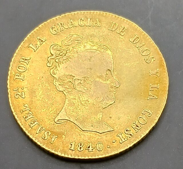 Inicio MONEDAS MONARQUIA ESPAÑOLA ISABEL II AÑO 1840.ISABEL II. 80 REALES ORO SEVILLA PESO 6,7 GR