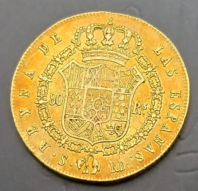 AÑO 1848. ISABEL II. 80 REALES ORO MADRID PESO 6,7 GR 840,00€ IVA incl.