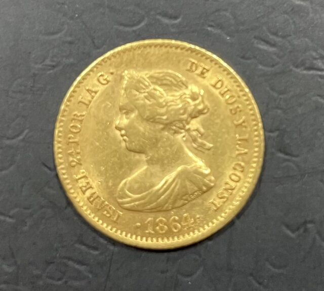 Inicio MONEDAS MONARQUIA ESPAÑOLA ISABEL II AÑO 1864. ISABEL II. 40 REALES ORO. PESO 3,3 GR