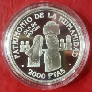 2.000 PTAS PLATA «PATRIMONIO DE LA HUMANIDAD, ISLA DE PASCUA »