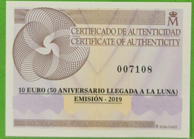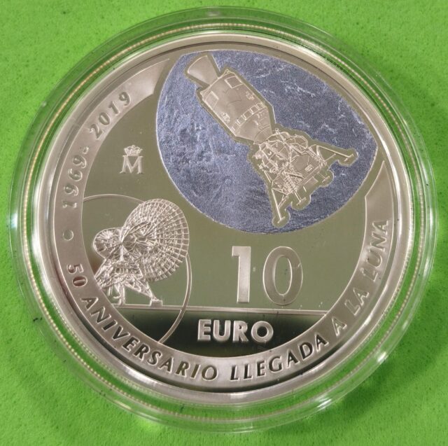 Inicio MONEDAS CONTEMPORÁNEO AÑO 2019. 10 EUROS PLATA 50 ANIVERSARIO LLEGADA A LA LUNA. PESO 27 GR