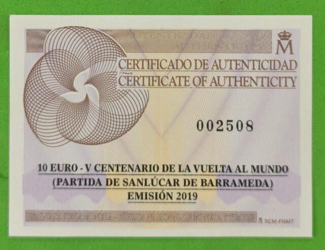 Inicio MONEDAS CONTEMPORÁNEO AÑO 2019. 10 EUROS PLATA V CENTENARIO VUELTA AL MUNDO. PESO 27 GR