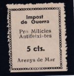 5 CTS NEGRO CON LEYENDA PRO MILICIES ANTIFEIXSTES.