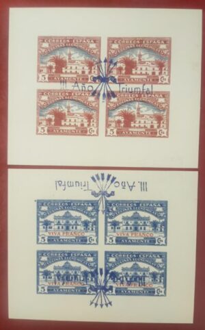 BONITA Y RARO LOTE DE DOS SELLOS » CORREOS ESPAÑA» EN HOJITA DE 4 SELLOS,