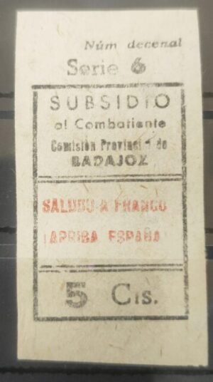 BADAJOZ. EDIFIL N/C *. 5 CTS SUBSIDIO AL COMBATIENTE