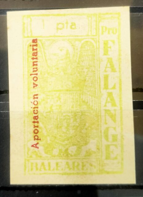 1 PTA VERDE AMARILLO PRO FALANGE SIN DENTAR Y CON SOBRECARGA «APORTACIÓN VOLUNTARIA».