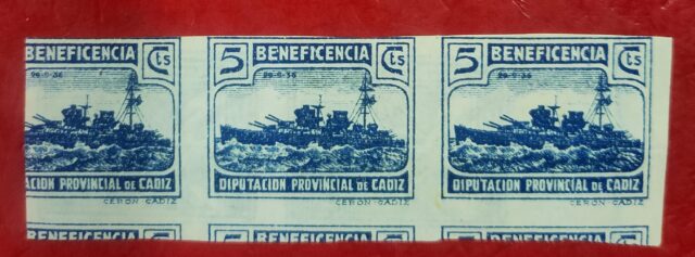 AL DORSO IMPRESIÓN DE SELLOS DE 5 CTS ACORAZADO BALEARES.