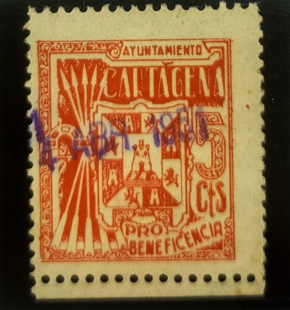 Inicio SELLOS GUERRA CIVIL ESPAÑOLA SELLOS LOCALES NACIONALES CARTAGENA (MURCIA). EDIFIL 1 US. 5 CTS ROJO PRO BENEFICENCIA.