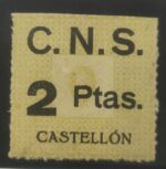 CASTELLÓN. EDIFIL NO CATALOGADO. 2 PTAS C.N.S NEGRO S AMARILLO.