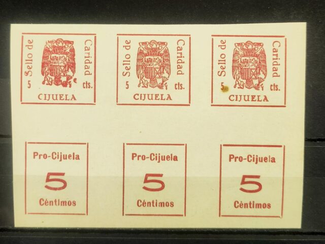 Inicio SELLOS GUERRA CIVIL ESPAÑOLA SELLOS LOCALES NACIONALES CIJUELA (GRANADA). EDIFIL 12 *- 16 *. 5 CTS CARMÍN BLOQUE DE 6 SELLOS.
