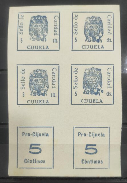 Inicio SELLOS GUERRA CIVIL ESPAÑOLA SELLOS LOCALES NACIONALES CIJUELA (GRANADA). EDIFIL 9 * – EDIFIL 13 * . 5 CTS AZUL CARIDAD Y PRO CIJUELA.