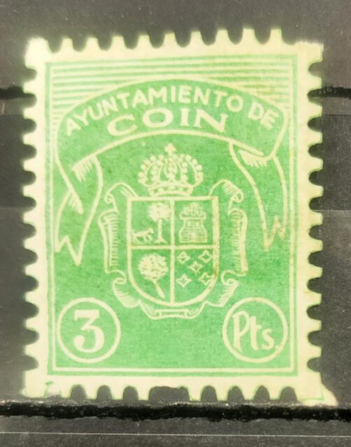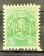 COIN (MÁLAGA). EDIFIL NO CATALOGADO. 3 PTAS VERDE AYUNTAMIENTO DE COIN.