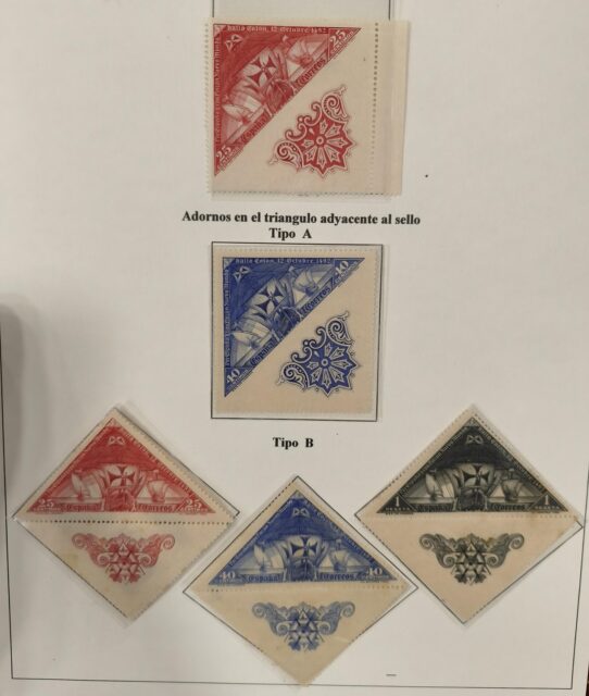 BONITO Y RARO LOTE DE SELLOS TRIANGULARES DE LA SERIE «DESCUBRIMIENTO DE AMÉRICA»,