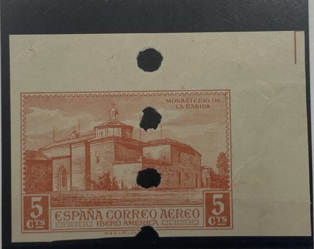 Inicio SELLOS ESPAÑA I CENTENARIO EMISIONES SIGLO XX EDIFIL 559 MTC ** 5 CTS NARANJA MONASTERIO DE LA RÁBIDA, TALADROS CONTINUADO.