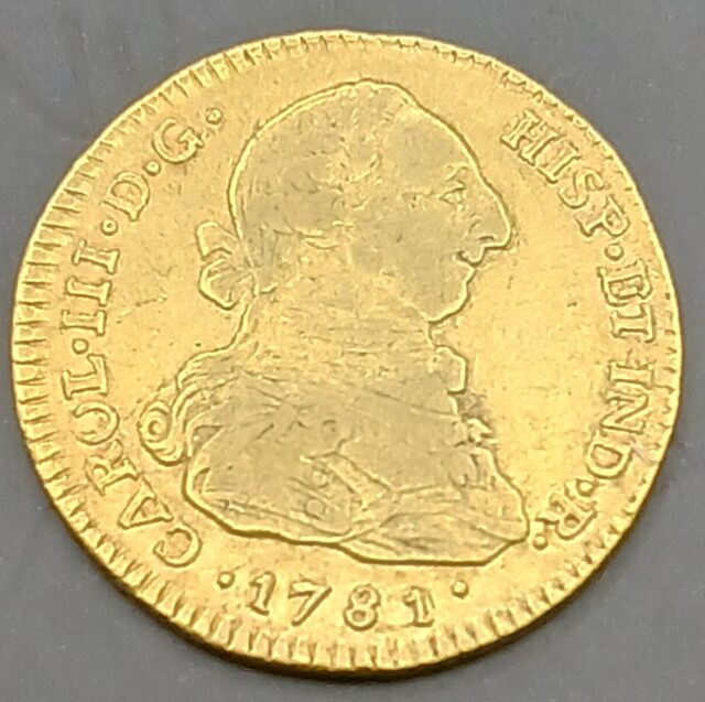 Inicio MONEDAS MONARQUIA ESPAÑOLA CARLOS III AÑO 1781 CARLOS III POPAYAN 2 ESCUDOS ORO. PESO 6,7 GR