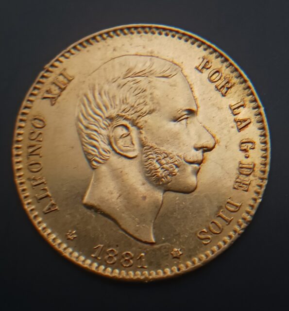 AÑO 1881 ALFONSO XII 25 PTAS ORO PESO  8,07 GR