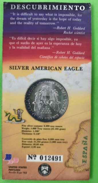 Inicio MONEDAS MONEDAS EXTRANJERAS ESTADOS UNIDOS. AÑO 1922. 1 ONZA PLATA 999 SEVILLA EXPO 92. PESO 31,04 GR