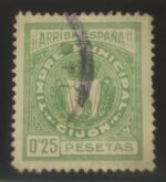 Inicio SELLOS GUERRA CIVIL ESPAÑOLA SELLOS LOCALES NACIONALES GIJÓN (ASTURIAS). EDIFIL 3 US. 25 CTS VERDE TIMBRE MUNIPAL.