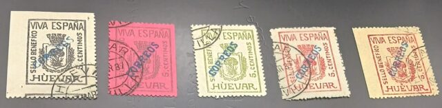 BONITA SERIE COMPLETA 5 VALORES USADA CON SOBRECARGA «CORREOS» EN DIAGONAL