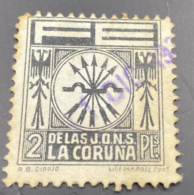 Inicio SELLOS GUERRA CIVIL ESPAÑOLA SELLOS LOCALES NACIONALES CORUÑA LA. EDIFIL 68 * 2 PTA NEGRO FE DE LA J.O.N.S