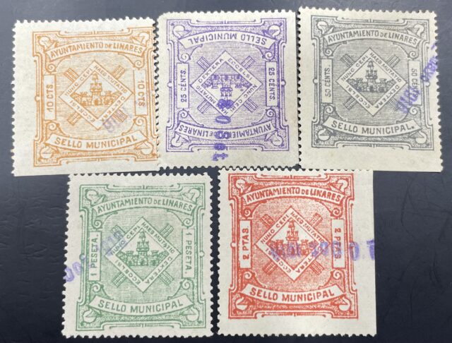 LINARES (JAEN). EDIFIL N/C. 5 SELLOS MUNICIPALES DESDE 10 CTS HASTA 2 PTAS