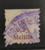 Inicio SELLOS GUERRA CIVIL ESPAÑOLA SELLOS LOCALES NACIONALES MELILLA. EDIFIL N/C. 0.25 PTAS CARMÍN C.N.S