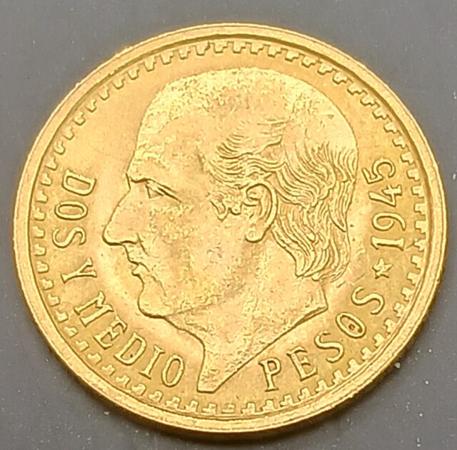MEXICO. AÑO 1945. DOS PESOS Y MEDIO ORO. PESO 2,06 GR 280,00€ IVA incl.