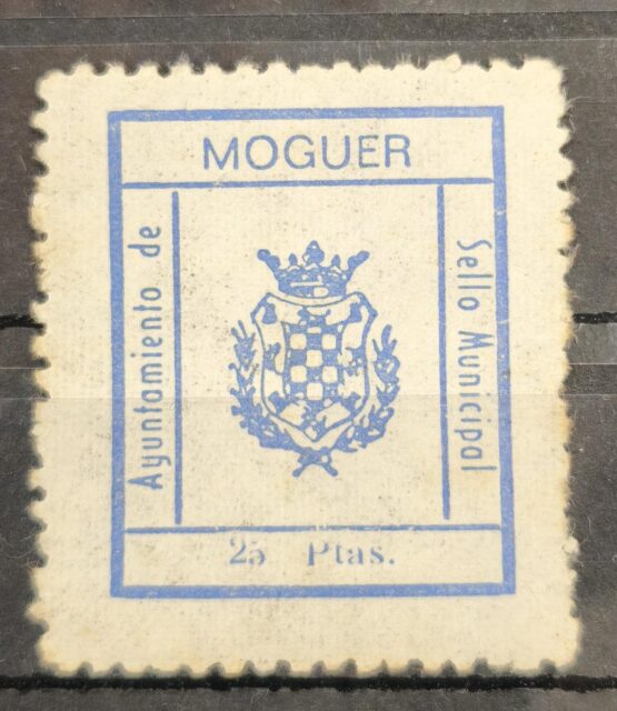 MOGUER (HUELVA). EDIFIL NO CATALOGADO. 25 PTAS AZUL SELLO MUNICIPAL.