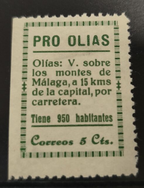 Inicio SELLOS GUERRA CIVIL ESPAÑOLA SELLOS LOCALES NACIONALES OLIAS (MÁLAGA). EDIFIL 2 *. 5 CTS VERDE PRO OLIAS.