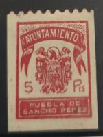 Inicio SELLOS GUERRA CIVIL ESPAÑOLA SELLOS LOCALES NACIONALES PUEBLA DE SANCHO PEREZ (BADAJOZ). EDIFIL N/C *. 5 PTAS ROJO AYUNTAMIENTO.